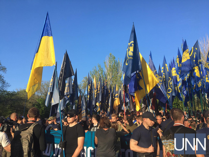 У центрі Одеси біля парку імені Шевченка сотні людей вийшли на «Марш українського порядку», організаторами якого виступили представники націоналістичних організацій.