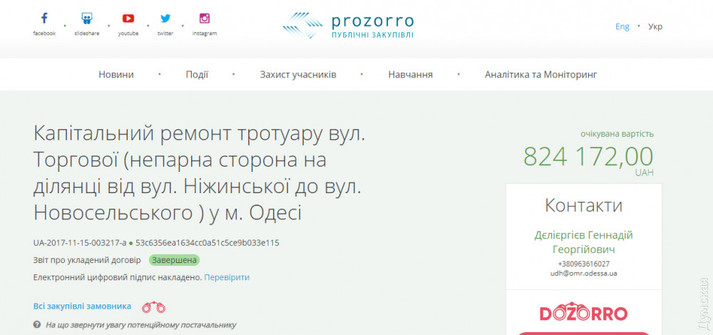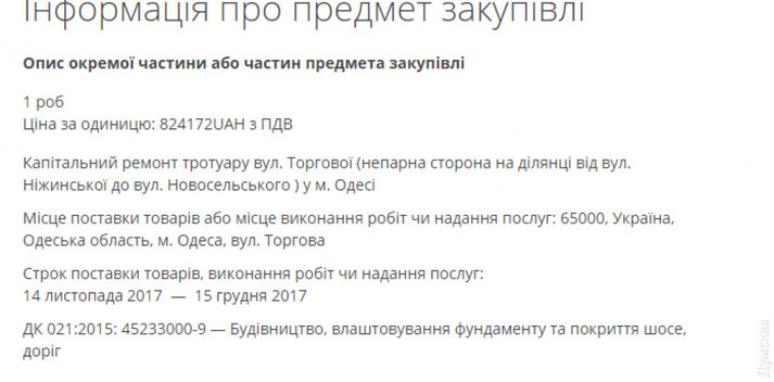 Тротуар ремонтували з 14 листопада по 15 грудня 2017 року. Замовником робіт було муніципальне управління дорожнього господарства, тендер виграло ТОВ «Навекастрой» (їй-богу, це не жарт). За ремонт фірма отримала 824 тисячі 172 гривні.