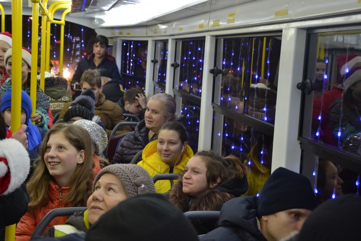 У трамваях під час двогодинної поїздки виступали музичні колективи, хори і працювали аніматори. Дозвілля дітей було досить активним - вони співали, грали в ігри, брали участь у конкурсах, а Дід Мороз переходив з вагона в вагон і дарував солодкі подарунки.