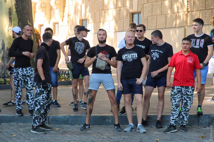 Учасники маршу дійшли до Думській площі, де стояли автобуси, які повинні їх зібрати. За поліцейським оточенням знаходилося до 30 супротивників ЛГБТ-фестивалю, міцних молодих людей, які кричали образливі слова на адресу опонентів.