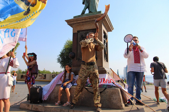 Марш рівності провели сьогодні вранці в центрі Одеси учасники фестивалю ЛГБТ-культури. Вони прокрокували по Приморському бульвару: від Воронцовського палацу до Думській площі. Біля пам’ятника Дюку в цей час проходила акція за традиційні цінності.