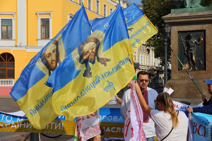 Опоненти ЛГБТ-фестивалю помолились за традиційні сімейні цінності.