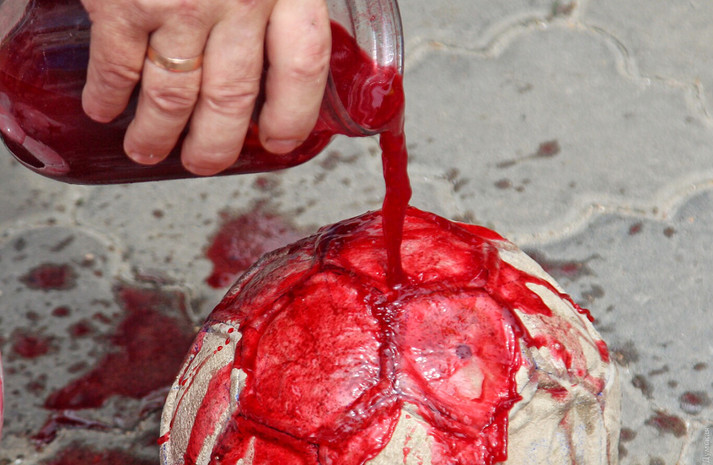 У підсумку учасники акції облили футбольні м'ячі червоною рідиною і символічно забили голи у «ворота Російської Федерації», перекинувши спортивні снаряди через паркан дипломатичної місії.
