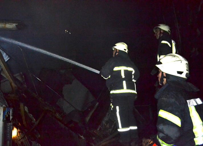 «Внаслідок інтенсивного горіння о 21:19 сталось обрушення даху і пожежа розповсюдилась на площу 150 кв. м. Під час падіння елементів конструкцій даху і гасіння пожежі четверо вогнеборців отримали травми та бригадою швидкої медичної допомоги з різного ступеня ушкодженнями доставлені до лікувальних закладів. Рятувальники о 21:50 пожежу локалізували на площі 200 кв.м. та о 22:24 ліквідували», - йдеться у повідомленні ДСНС.
