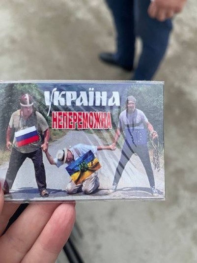 Відвідувачам одного з одеських тирів у районі Аркадії роздавали відверто антиукраїнські сувеніри. На магнітику з підписом «Україна непереможна» зображена сцена із фільму «Кавказька полонянка», де ніби Росія та Євросоюз «тримають» Україну. Про це повідомляє телеграм-канал Ganul.