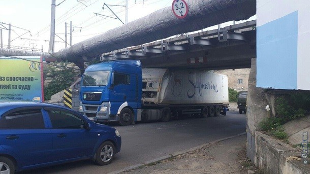 В Одесі на Краснослобідській вулиці автомобіль MAN застряг під мостом. Про це повідомляє телекомпанія Град у вівторок, 6 серпня.