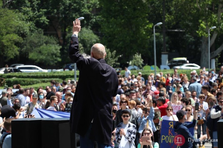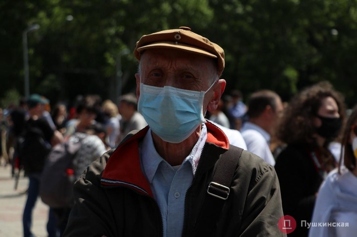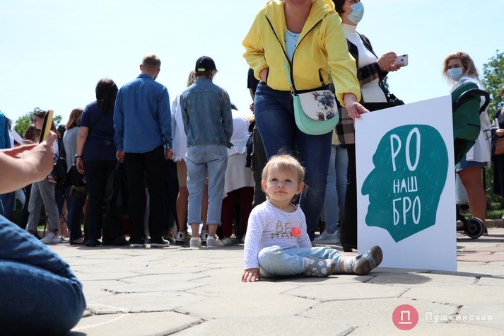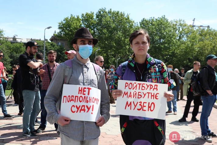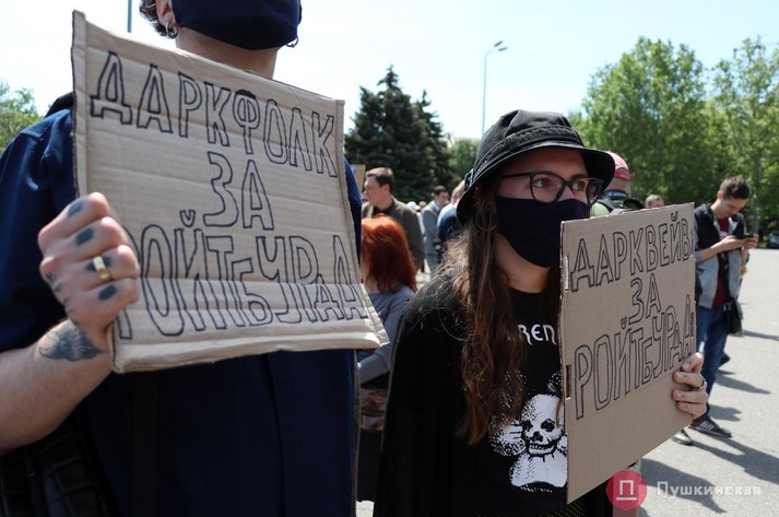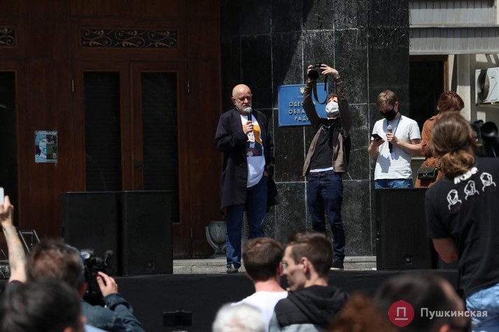 В Одесі близько 400 осіб зібралися у суботу, 6 червня 2020 року, біля будівлі ОДА на підтримку Олександра Ройтбурда, нещодавно в черговий раз звільненого судом з посади директора Одеського художнього музею