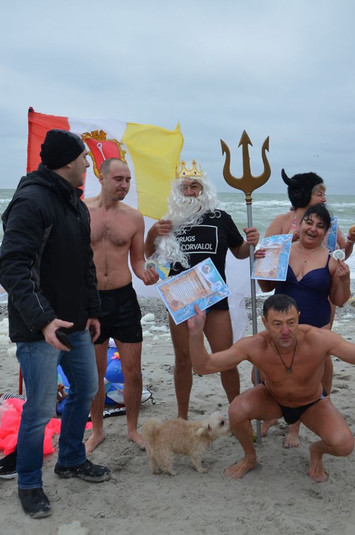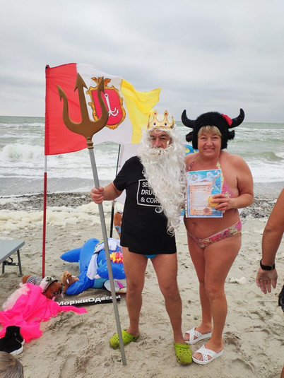 У цьому році любителі купання в крижаній воді підійшли до організації акції серйозно, адже недавно в Одесі затонув танкер, який викинув в море нафтопродукти.