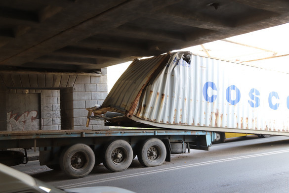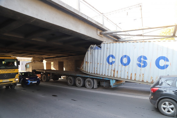 Згідно з інформацією очевидців, фура з контейнером намагалася проїхати під мостом, проте спроба виявилася невдалою. В результаті транспортний засіб втратив свій вантаж.