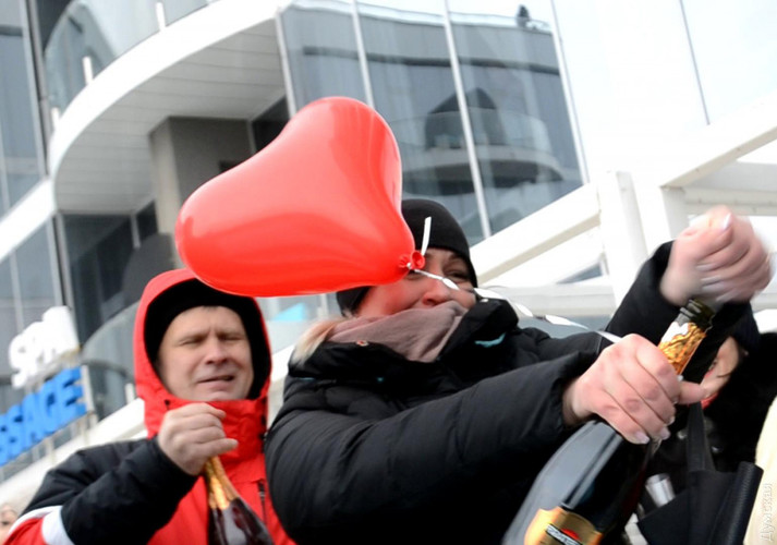 В Одесі закохані пари одночасно відкрили більше 200 пляшок шампанського