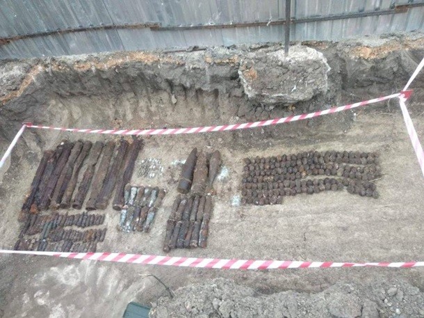 Там знайшли 154 гранати Ф-1, 28 підривників до артснарядів, 11 мінометних мін 82 мм, 1 мінометну міну 120 мм, 29 артилерійських снарядів 37 мм, 17 артилерійських снарядів 45 мм, 23 артилерійські снаряди 75 мм, 2 артилерійські снаряди 152 мм.