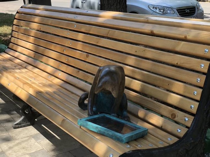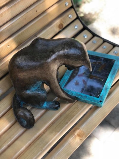 Скульптуру кота з планшетом встановили біля одного з магазинів електроніки у провулку Маяковського