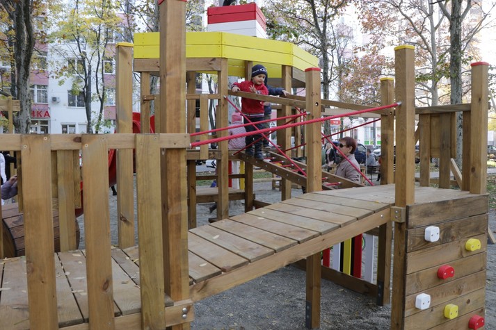 Незвичайний майданчик розрахований на дітей віком від 5-ти до 12-ти років і включає в себе низку елементів, які сприяють гармонійному розумовому і фізичному розвитку дітей.