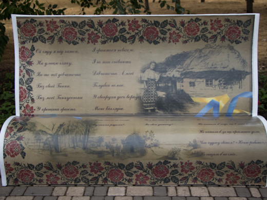 На стилізованих, барвисто оформлених лавах можна побачити різноманітні висловлювання і цитати з віршованих творів Великого Кобзаря.