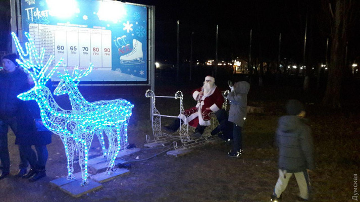 У ці святкові дні жителів міста, які виходять прогулятися в парк Горького, радує безкорисливий Дід Мороз.