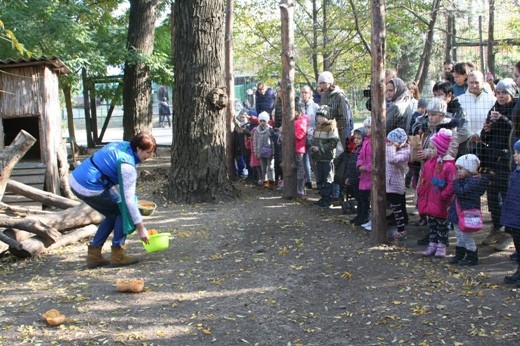 На завершення ігрової програми її учасники спостерігали за показовим годуванням пернатих мешканців зоопарку - павичів. Також усі охочі змогли самостійно погодувати качок.