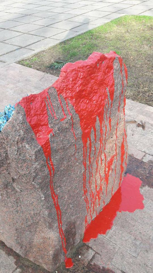 Невстановлені особи облили фарбою меморіальний камінь «Загиблим воїнам АТО»