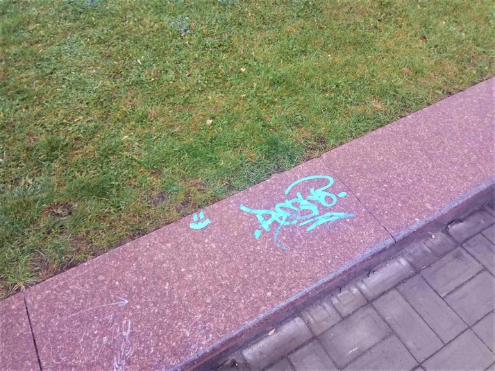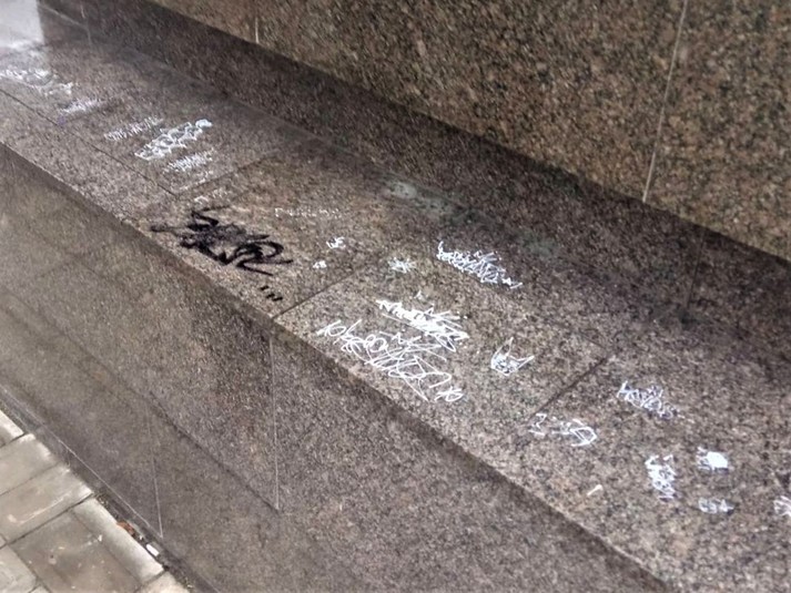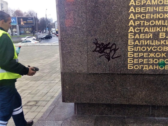 Невідомі розмалювали гранітні тумби з іменами героїв і парапети біля стели «Крила Перемоги» на площі Десятого квітня