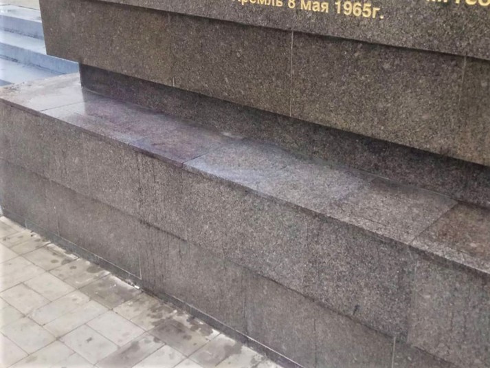 Фахівці ділянки з обслуговування пам'ятників монументального мистецтва, які не є пам'ятками архітектури, оперативно змили написи і привели в належний вигляд територію біля стели.