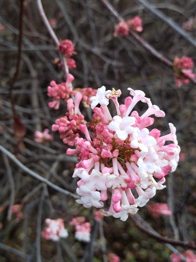 Цього року відносно теплий початок зими розбудив квіти в грудні. Цвітіння в Калини Пахучої не довге – як тільки вдарять морози цей процес призупиниться, і відновиться аж коли точне тепліти.