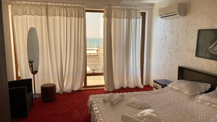 У таких номерах є окрема ванна кімната з феном. Є холодильник. Із номера можна дивитися на море та басейн.