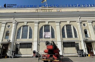 Влада Одеси вирішила прикрити назву міста російською мовою та Орден Леніна на фасаді залізничного вокзалу. Про це повідомляє «Суспільне».