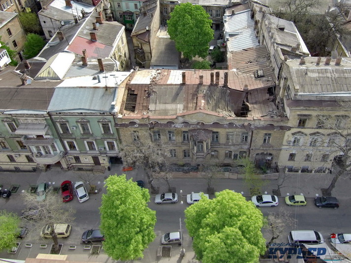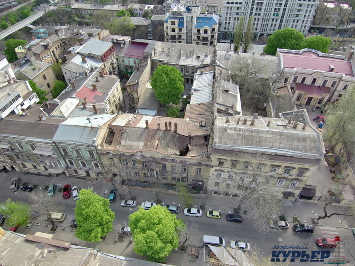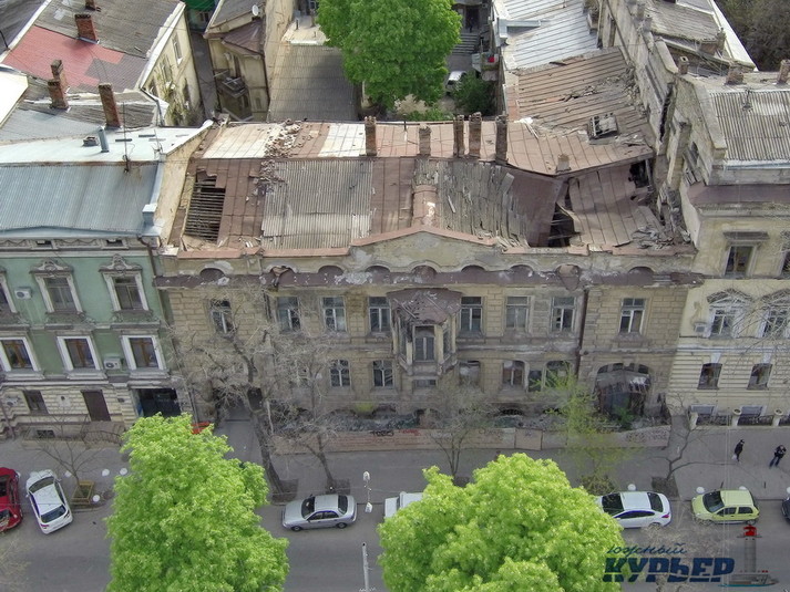 Як обвалився дах у знаменитому будинку в Одесі. Вид з висоти пташиного польоту