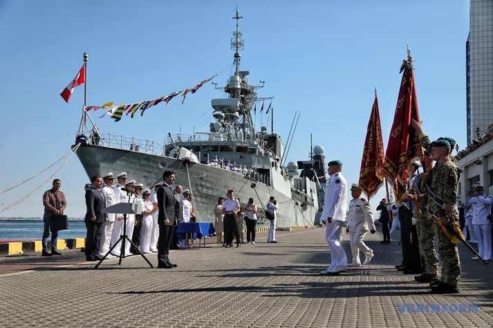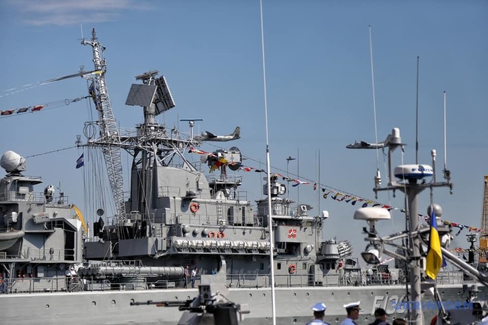 Біля причалів морвокзалу вишикувалась лінійка бойових кораблів, яку очолює фрегат «Гетьман Сагайдачний», флагман групи кораблів НАТО у Середземному морі фрегат Toronto та есмінець Dunkan британських Королівських ВМС, а на березі - зразки військової техніки, артилерійські установки і гармати.