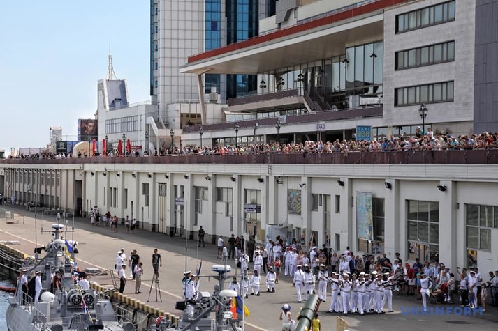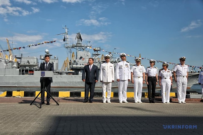 На морському вокзалі Одеси сьогодні відбулися урочисті заходи з нагоди Дня ВМС Збройних сил України та проведення українсько-американського навчання Sea Breeze — 2019. В урочистостях взяли участь президент України Володимир Зеленський та міністр оборони України Степан Полторак.