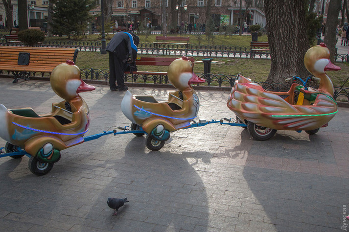Єдине, що вибивалося з концепції оновленої Гуморини - це дитячі атракціони, на кшталт батутів і бувалих качечок на колісному ходу, які розмістили в «Горсаду» і за «Великій Московській». Втім, і вони знайшли своїх шанувальників.