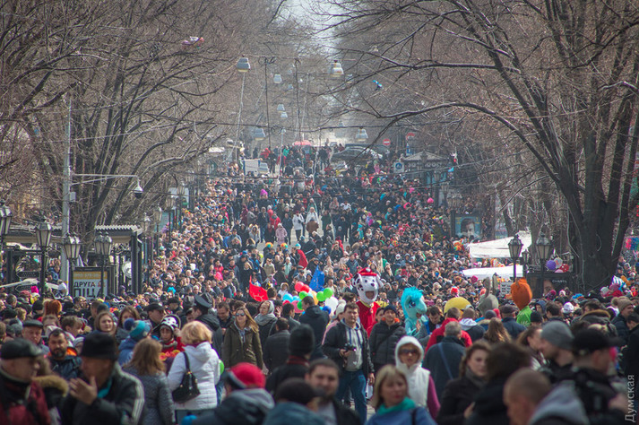 На радість організаторів і простих одеситів, обіцяний синоптиками дощ на місто так і не пролився, проте сильний вітер компенсував його відсутність. Незважаючи на це, свято, приурочене до Дня сміху (або дурня, як кому завгодно), пройшло при солідному скупченні людей.