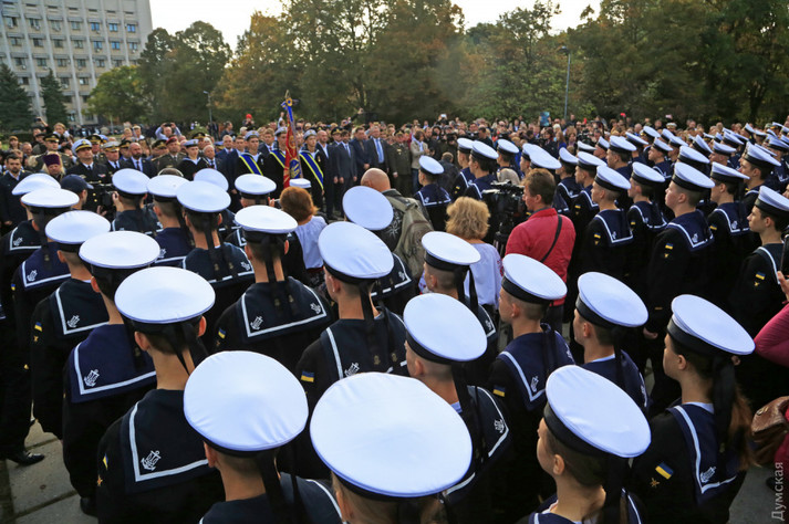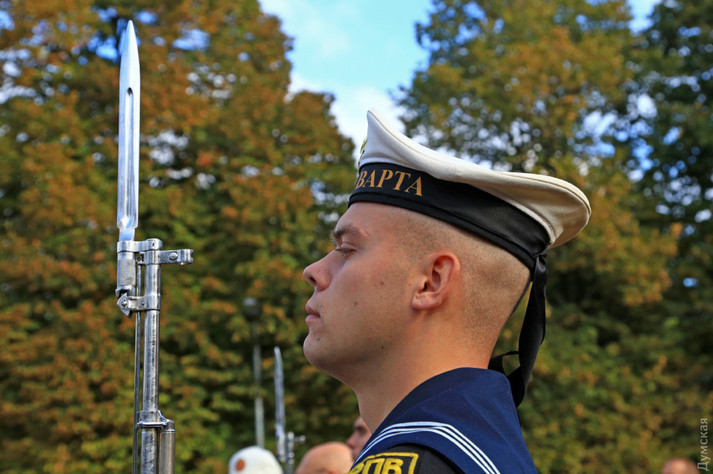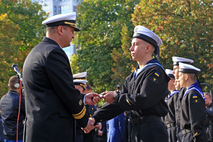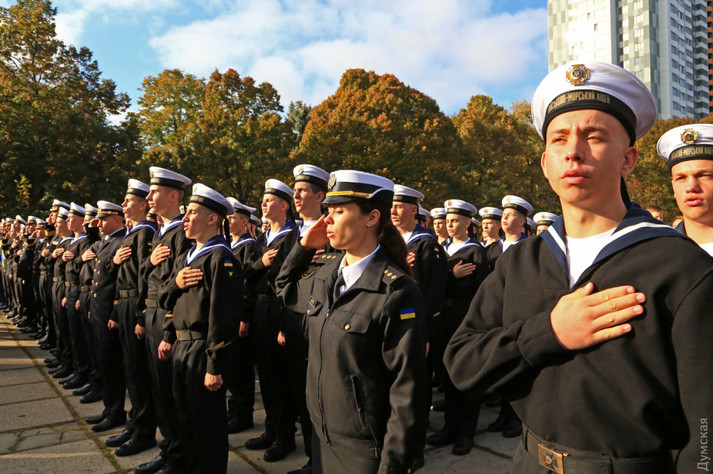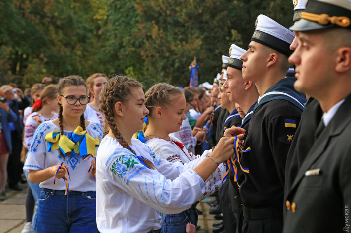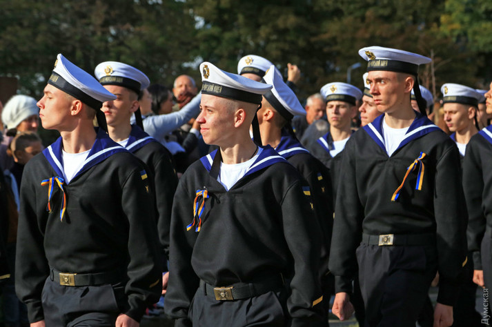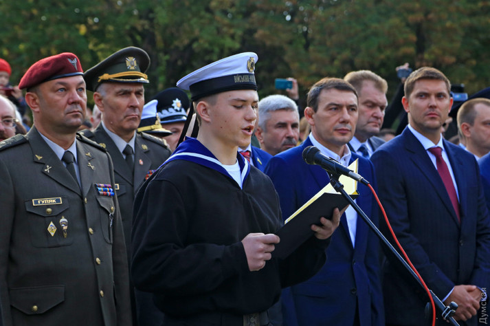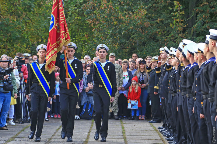 Далі був марш почесної варти, а потім вихованці Військово-морського ліцею склали присягу на вірність Україні. 88 молодих хлопців поклялися «служити і захищати нашу святу землю від ворога». Перший заступник командувача ВМСУ віце-адмірал Олексій Неіжпапа побажав юним воїнам успіхів у навчанні та ратній справі.