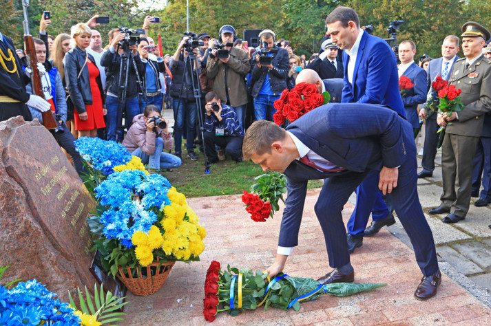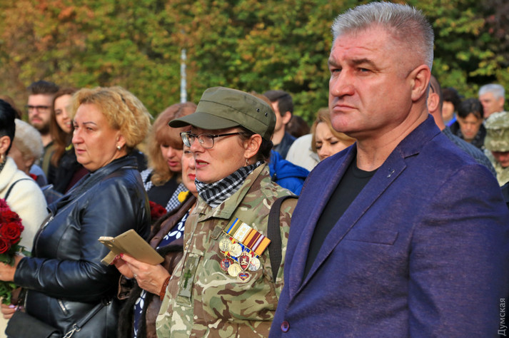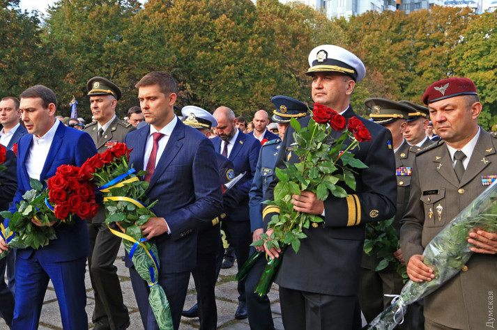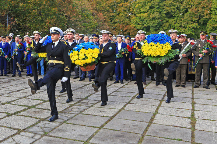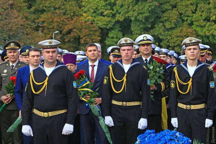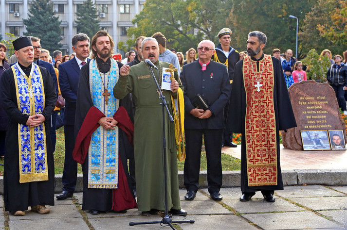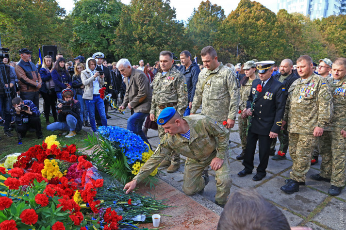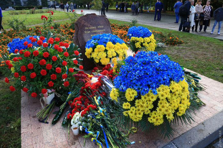 Офіційні особи і прості одесити поклали квіти біля каменю, на місці якого зведуть пам'ятник полеглим. Після цього відбувся молебень усіх конфесій за Україну. Присутні вшанували пам'ять українських героїв.