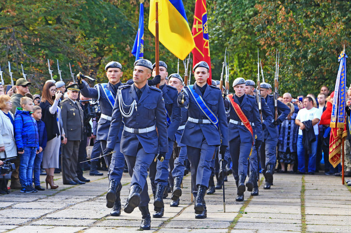 Урочисті заходи, присвячені Дню захисника України, пройшли сьогодні в сквері героїв Небесної сотні, що біля будівлі облради і облдержадміністрації на проспекті Шевченка.