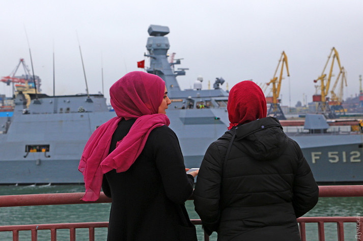 Очікування візиту турецьких кораблів розтягнулося на довгих 7 годин. Якщо рано вранці Морвокзал майже порожній, то з обіду, завдяки повідомленням ЗМІ, у 16-го причалу почав збиратися народ.