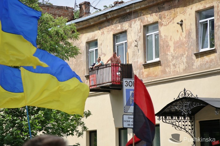 Як зазвичай стартувала колона у «Пасажу» на Дерибасівській. Головні правила - наявність вишиванки і ніякої політики.