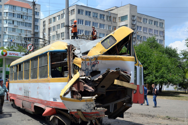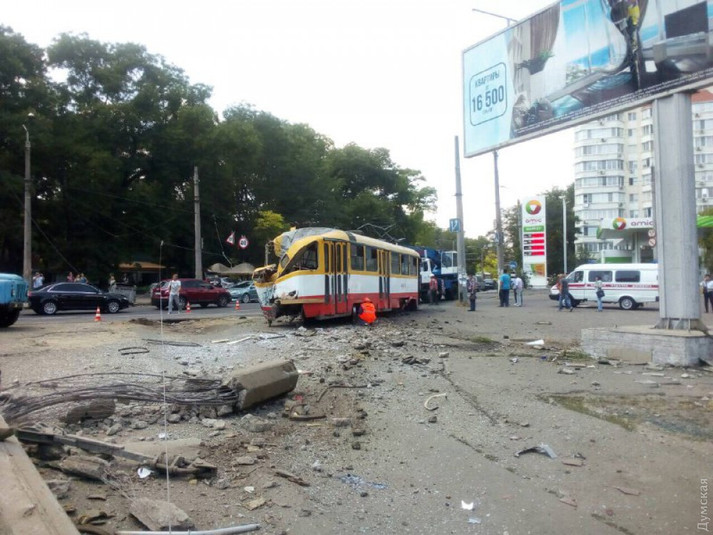 Моторошні фото ДТП в Одесі: трамвай зніс опору електропередач