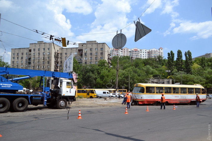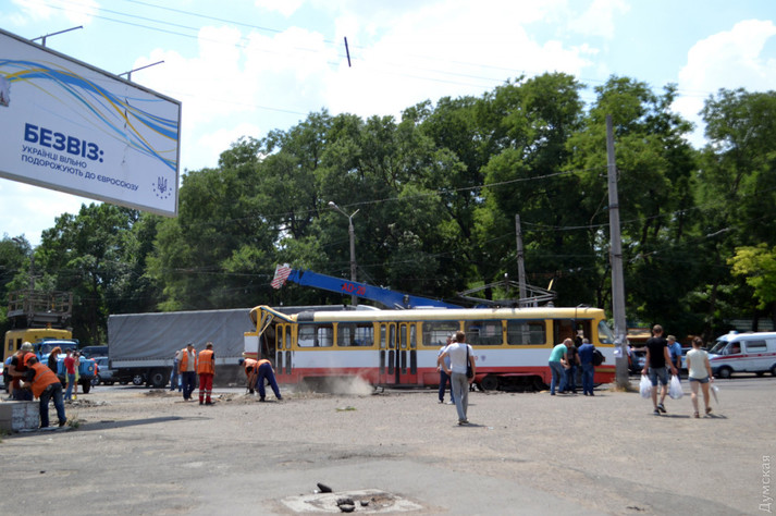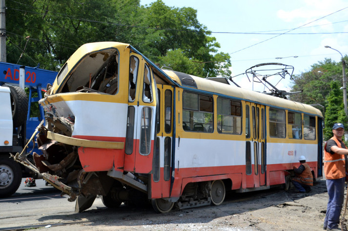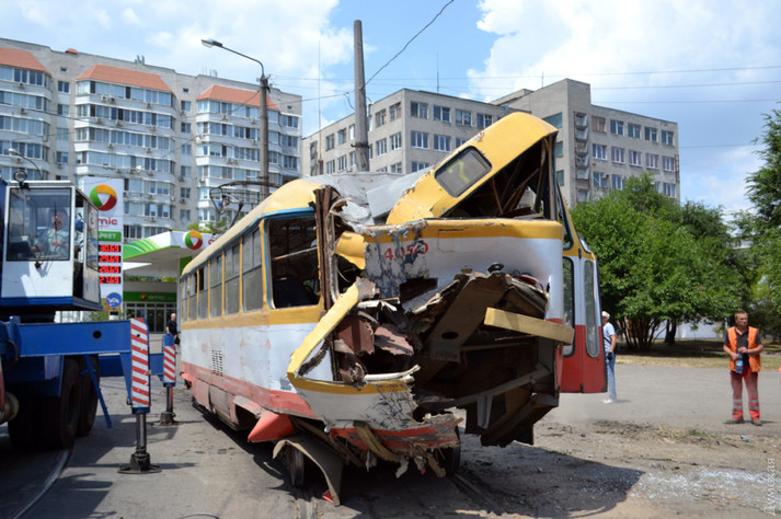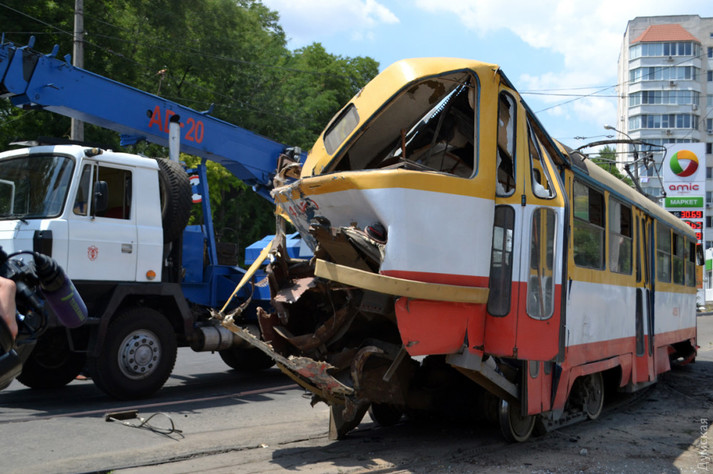 Аварія за участю трамвая трапилася 20 червня близько полудня на Балківській вулиці - трамвай злетів зі спуску Маловського, зніс опору електропередач і пошкодив легковий автомобіль.