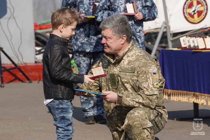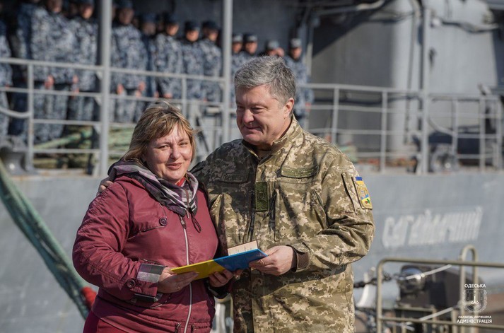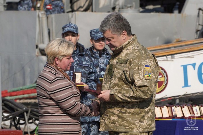 Президент Петро Порошенко побував з робочою поїздкою в Одеській області і зустрівся з родинами полонених військових моряків. Він вручив сім’ям державні нагороди і висловив упевненість, що Україна поверне своїх полонених.