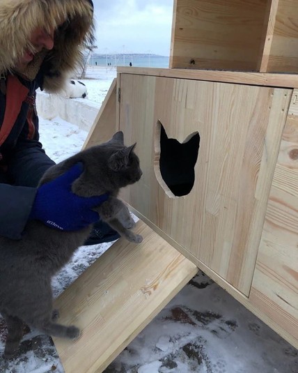 «Туди можна зручно під'їхати на машині і погодувати котів. У будиночку є годівниця, в яку можна засипати корм і анонімно допомогти котикам», - розповів Феденко.