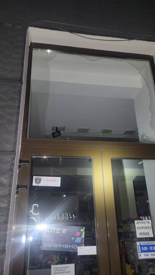 Вибуховою хвилею вибито вікна комерційних приміщень та автосалону. Над ліквідацією наслідків працюють усі необхідні служби.