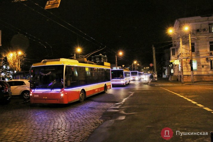 У параді взяли участь вісім тролейбусів, прикрашених гірляндами і підсвічуванням.