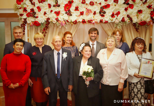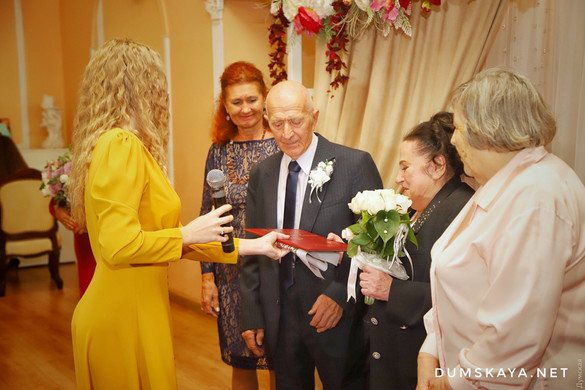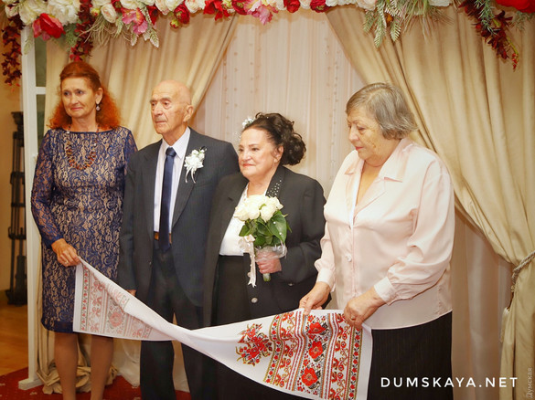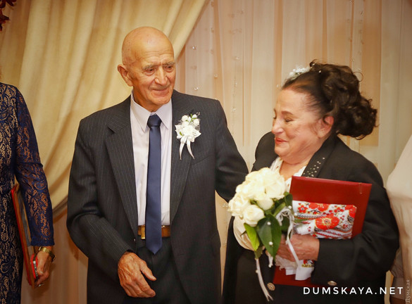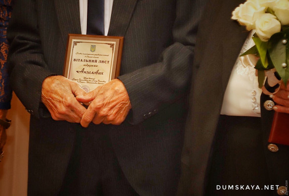 У Малиновському РАЦСі Георгій і Анна Ангелови відзначили діамантовий 60-річний ювілей своєї родини. Вони знову урочисто розписалися і дали один одному клятви.