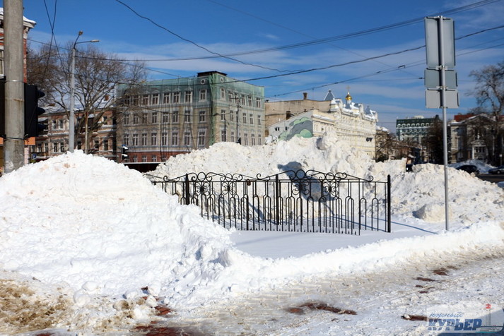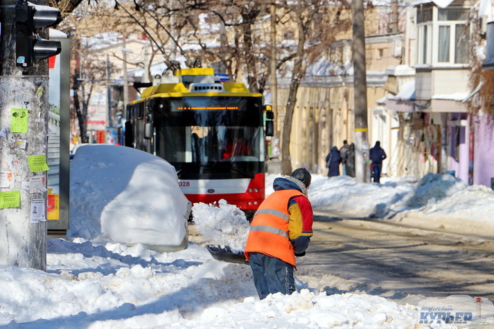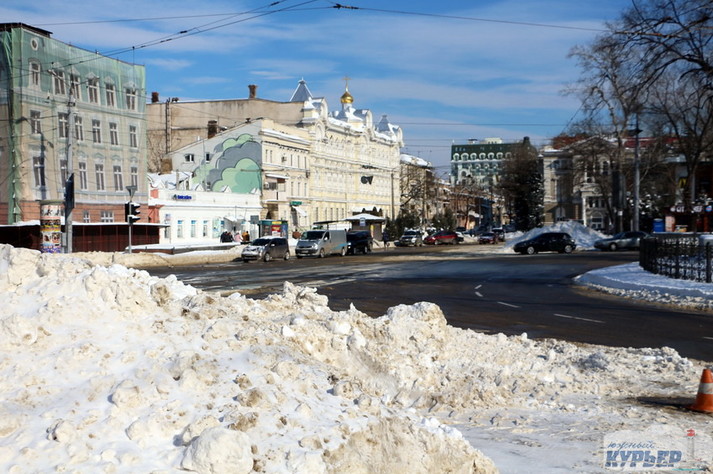 Навіть відверто другорядні вулиці в центрі на кшталт Базарній або Єврейської - теж розчищені. На жвавих перехрестях сніг згребли в величезні гори, після чого вивозять вантажівками.