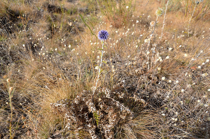 Древесная растительность на этих глиняных образованиях довольно скудна, что, вероятно, является одной из причин эрозионных процессов. Однако травянистые растения здесь есть. И самое любопытное, пожалуй, это мордовник колючий. Цветок у него – лиловый колючий шарик. Ботаники утверждают, что мордовник – растение лекарственное, приносящее исцеление тем, кто страдает заболеваниями суставов.