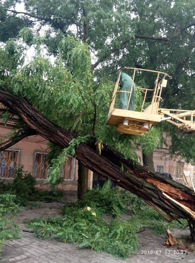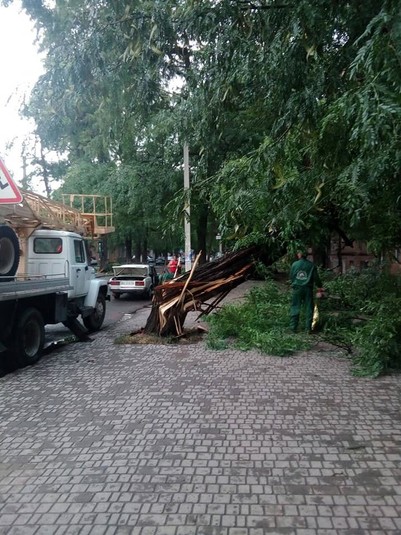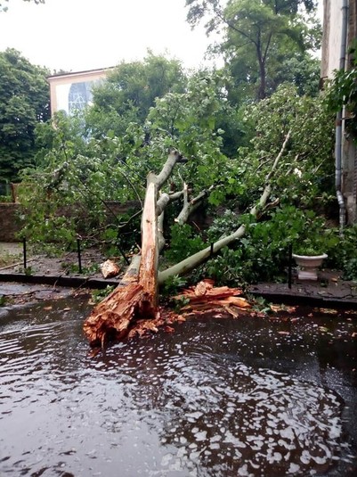У середу, 3 червня, після обіду спостерігався справжній ураган в Одесі. Сильним вітром зносило дерева, які обривали дроти та падали на машини і будинки. Наслідки негоди комунальники продовжили ліквідувати і сьогодні вранці.
