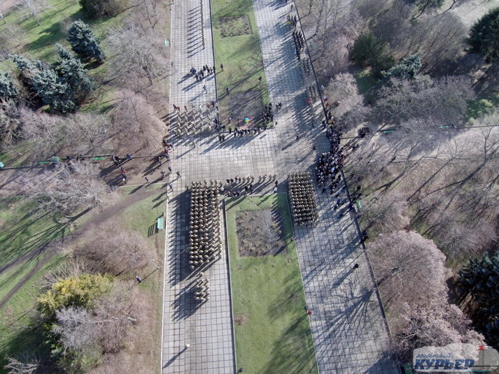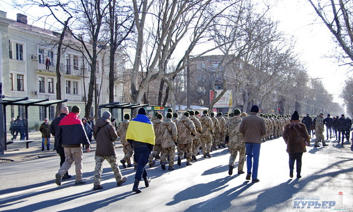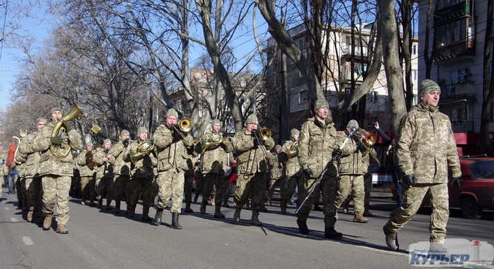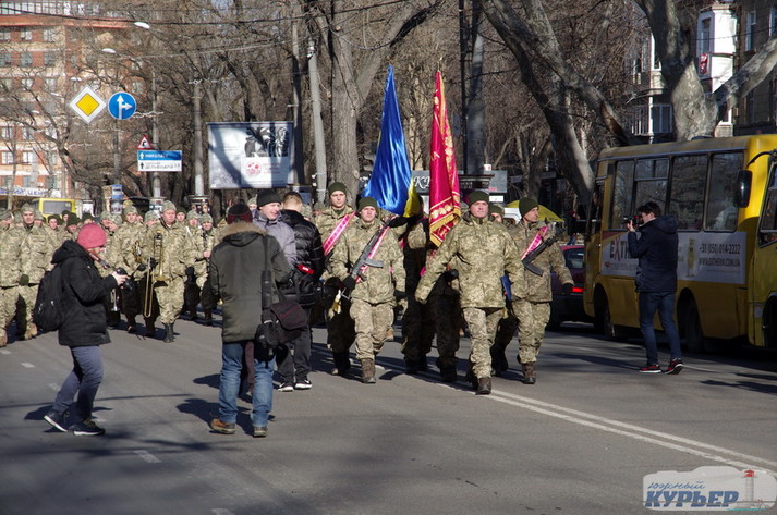 Після мітингу кілька сотень військових, як зі складу 28-ї бригади, так і інших військових частин і ветерани АТО пройшли урочистим маршем від скверу Героїв Небесної Сотні по проспекту Шевченка до площі 10-го Квітня і монументу «Крила Перемоги».