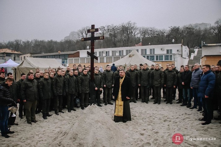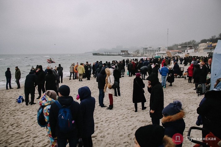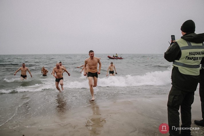 В Одесі сотні городян прийшли на море, щоб скупатися в день Хрещення Господнього. За їхньою безпекою стежили рятувальники, нацгвардійці і медики.
