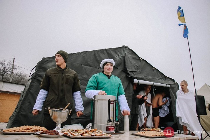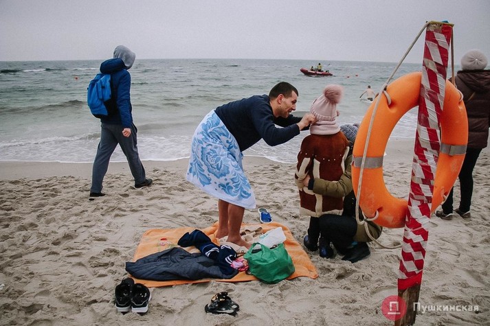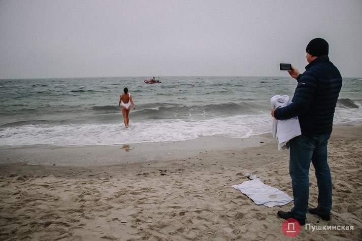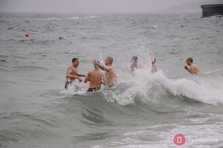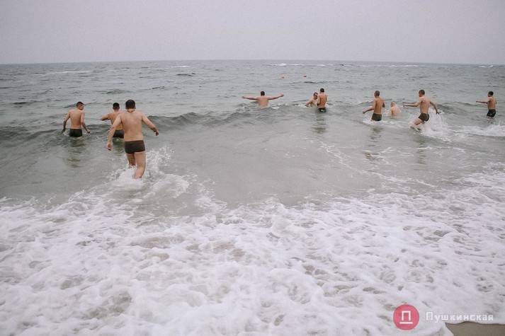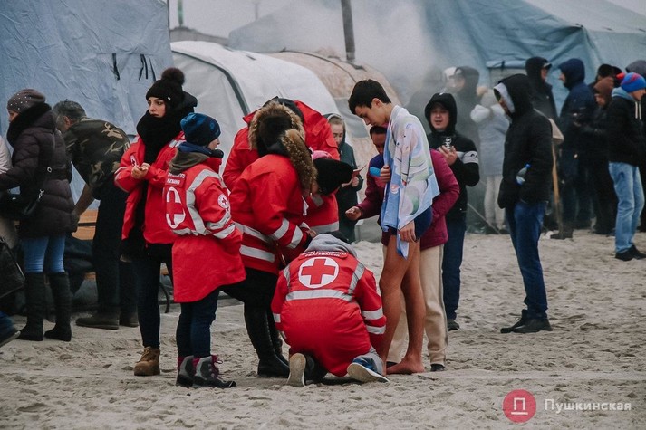 По всьому периметру пляжу стоять рятувальники. На Ланжероні поставили баню, пункт обігріву та польову кухню з чаєм і бутербродами. Купання проходили без пригод: з води довелося рятувати тільки шльопанці одеситів.