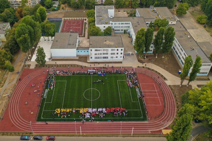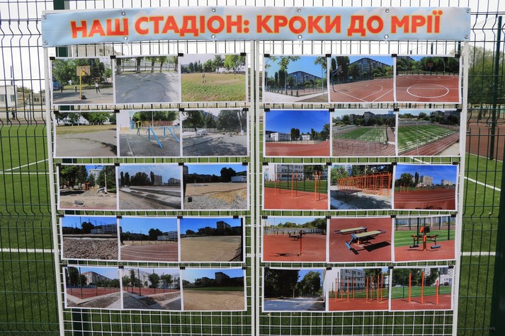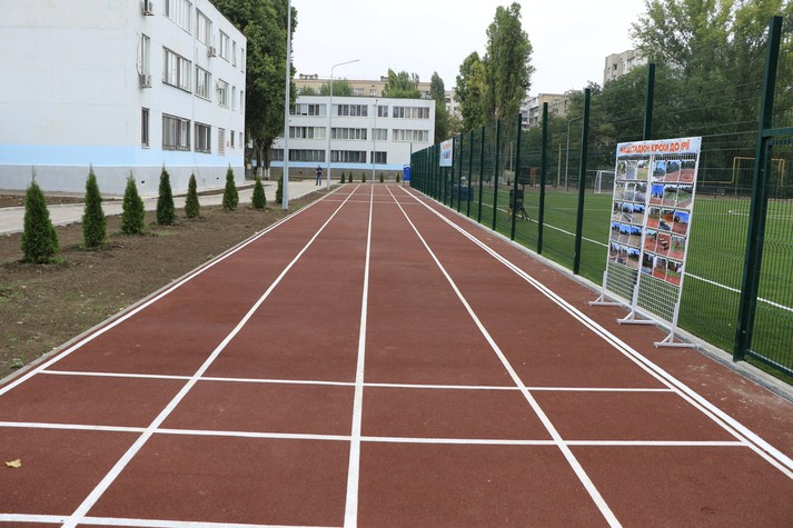 Для учнів одного з найбільших навчальних закладів у місті на пришкільній території були побудовані баскетбольний та волейбольний майданчики, зона ворк-ауту, велике огороджене футбольне поле з біговими доріжками по периметру, а також мініполе для занять футболом. Для можливості занять спортом до пізнього вечора облаштовано систему зовнішнього освітлення, а також упорядковані майданчики для відпочинку.